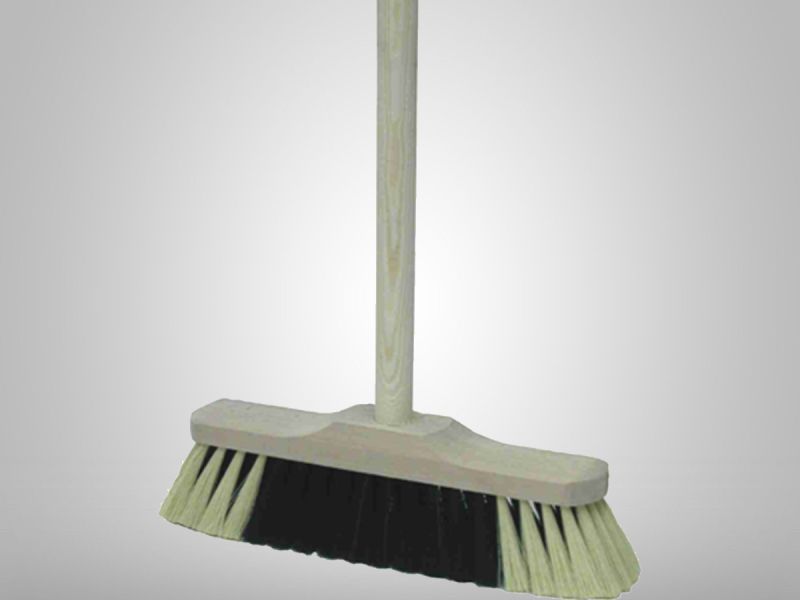 Smeták dřevěný nelakovaný, komplet s násadou, štětiny umělé 100/0