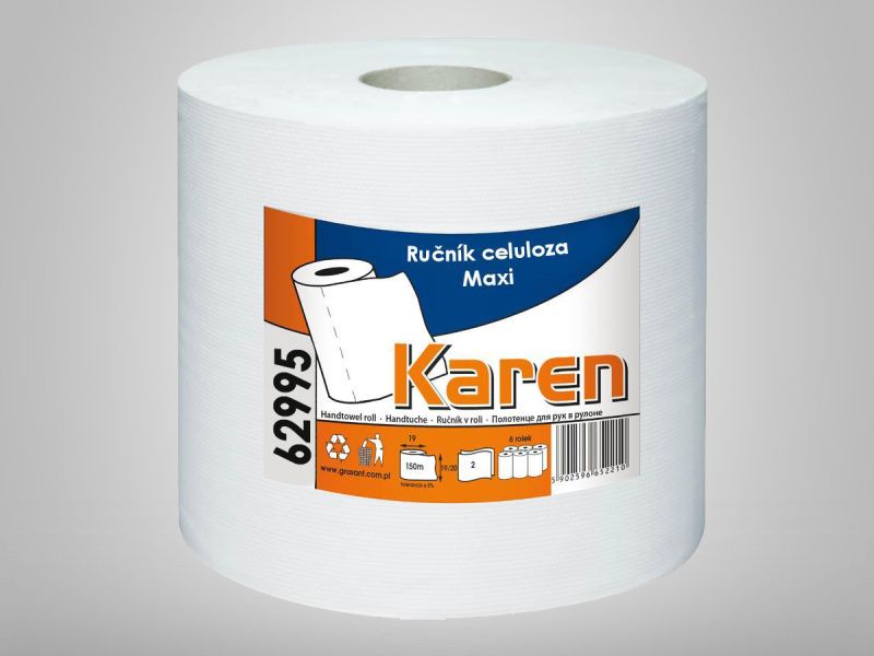 Recyklované ručníky MAXI 2 vrstvé z celulozy s vnitřní odvíjecí dutinkou. Vhodné do zásobníků určené pro ručníky v roli MAXI i se středovým odvíjením.