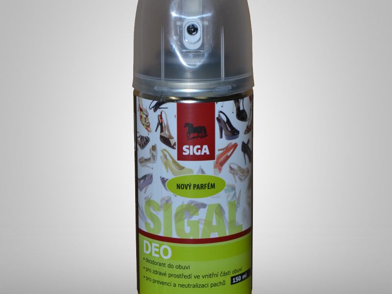 Siga Deo sprej je dezinfekční přípravek se svěží kompozicí vůní s převládajícím zeleným citronem (nově s mentolem). Je určený k redukci tvorby pachů, vznikající v obuvi při aktivním sportování, nebo při používání v pracovním procesu. Účinně likviduje nežádoucí zápach, který se tvoří při dlouhodobém nošení obuvi.