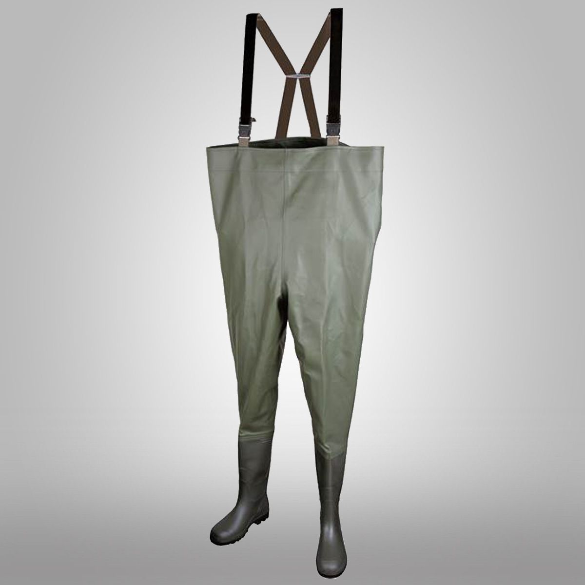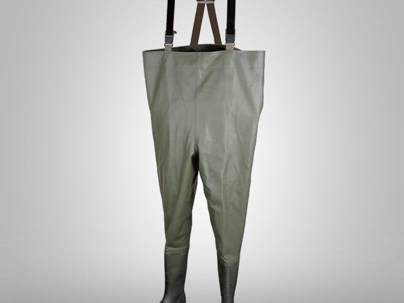 Rybářské vysoké holínky na hruď, elastické šle ze zeleného PVC s nylonovou vystýlkou, hydrofóbní úprava