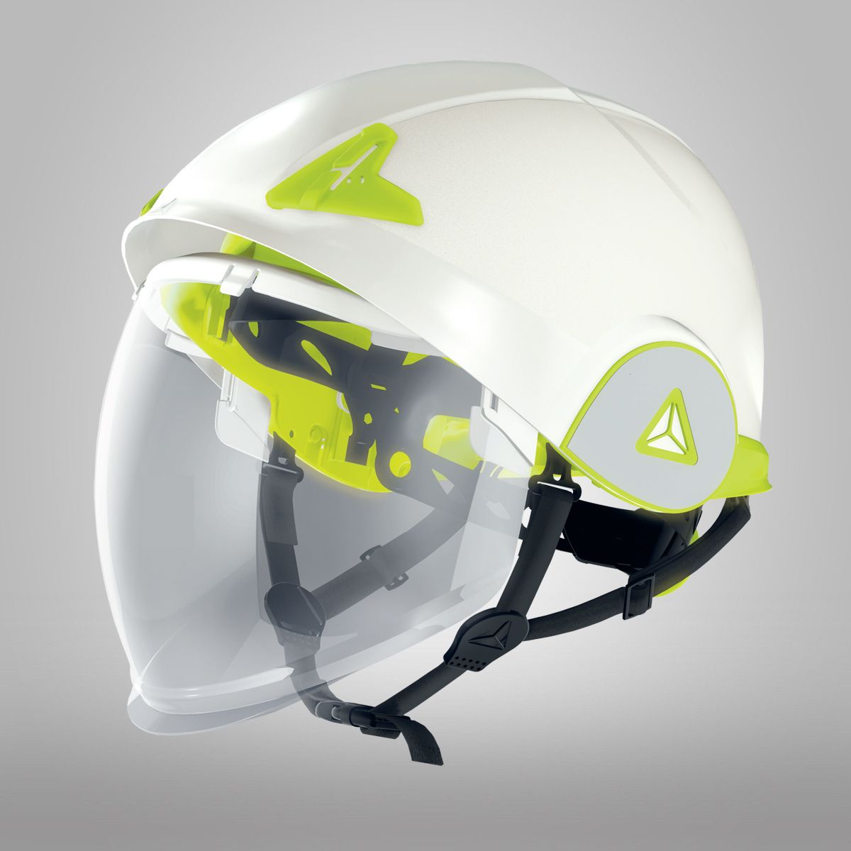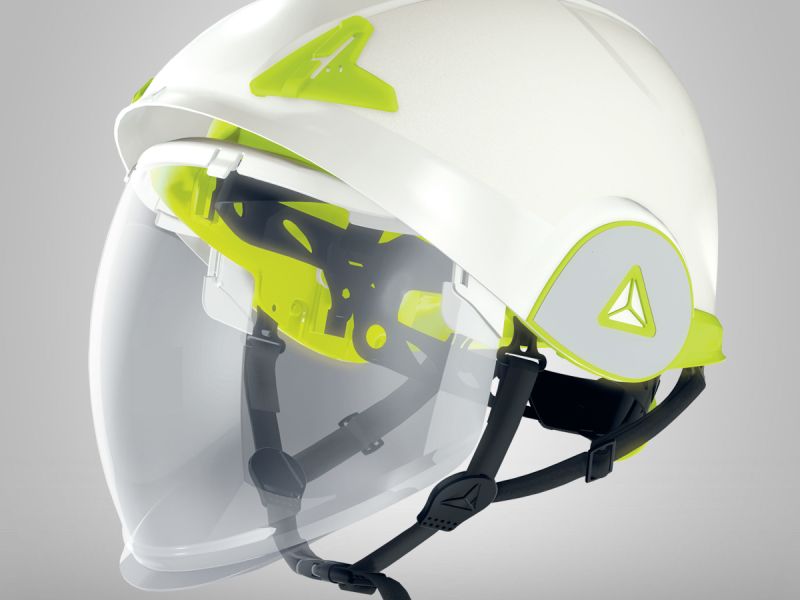 ABS bezpečnostní přilba s dvojitým pláštěm s výsuvným ochranným krytem. Sportovní a dynamický design. Polyamidový popruh: 3 textilní pásy se 6 body uchycení. Pěnový potní pásek. Nastavitelná velikost pomocí One-D Rottor systémem: od 53 do 63 cm. 2 možné pozice čelenky (nahoru/dolů) pro vyšší komfort. Retro-reflexní nálepky. Elektrická izolace do 1 000 V.A.C. nebo 1 500 V.D.C, ochrana před elektrickým obloukem třídy 1 (GS-ET 29). Štít s úpravou proti zamlžování a ošetřením proti poškrábání, ochrana před elektrickými oblouky a náhodnému rozstřiku roztavených kovů nebo horkých kapalin.