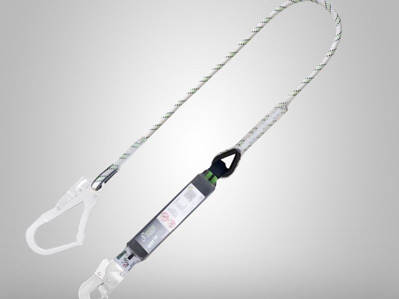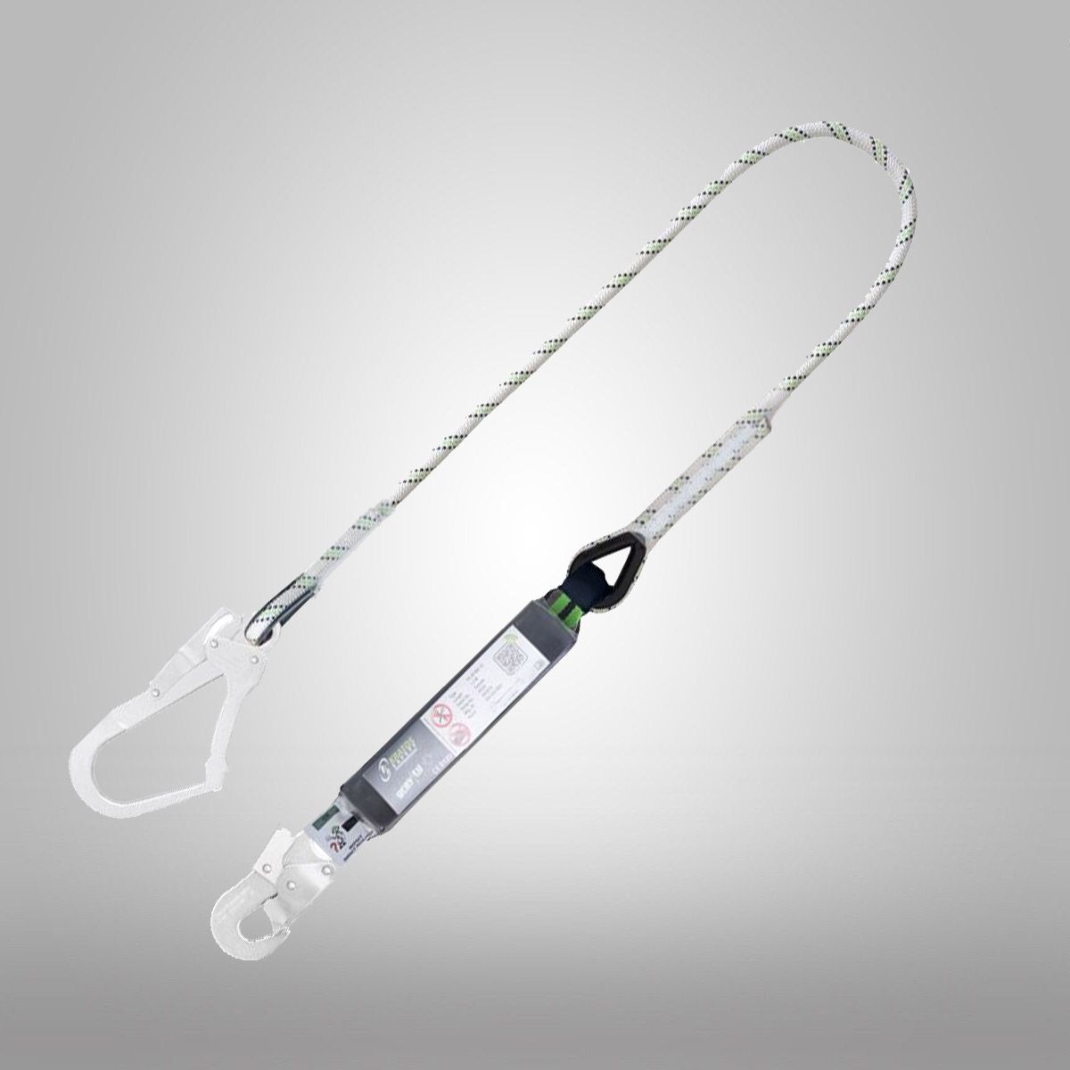Tlumič pádu, popruh šířky 35 mm, polyamidové lano o šířce 12 mm, délka 1,5 m, oka jsou opatřena ochranou proti opotřebení, sešití je opatřeno ochrannou fólií, na obou koncích jsou ocelové háky