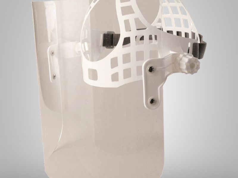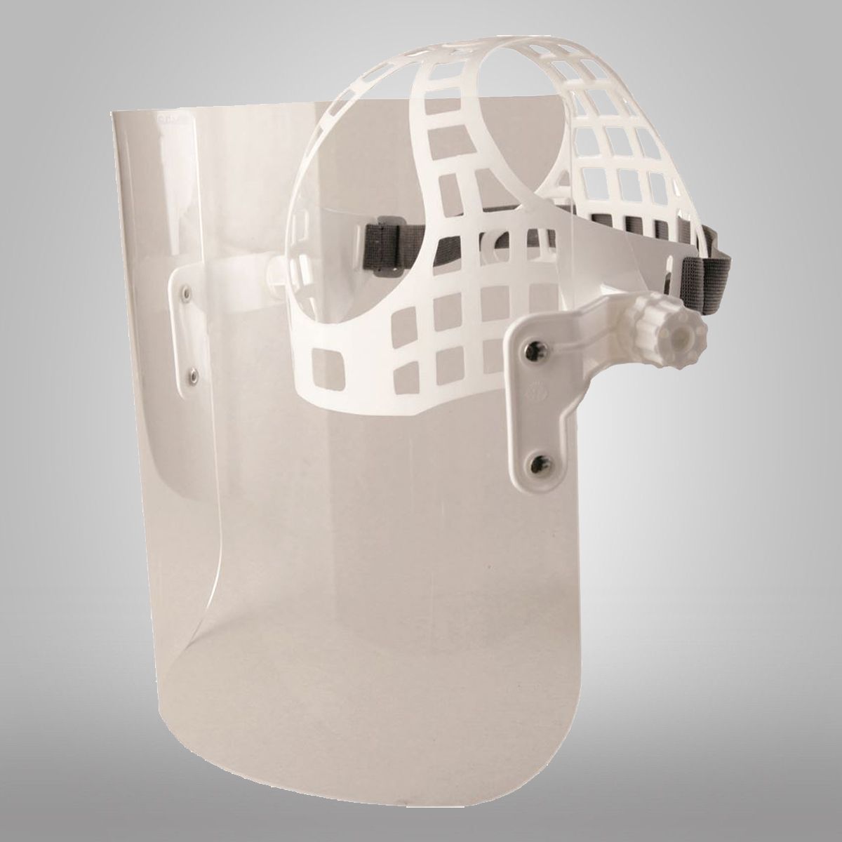 Ochranný štít je tvořen náhlavním nosičem a hledím, hledí z čirého PMMA (plexiskla) tloušťky 2 mm, poskytuje ochranu zraku a obličeje proti poškození nárazem pomalu letících částic, vhodný pro všechny druhy mechanického obrábění, montážní práce nebo pro práci ve zdravotnictví