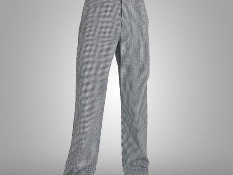 Kalhoty pro řezníky a kuchaře v pase do gumy. Boční kapsy ve švu. Zadní kapsa na knoflík. Klasické řeznické kalhoty. Praktická zadní kapsička na knoflík. Odolný materiál přizpůsoben pro opakované, náročné praní v prádelnách.