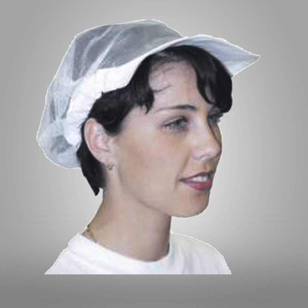 Kuchařská čepice s kšiltem, upevnění na gumu.
