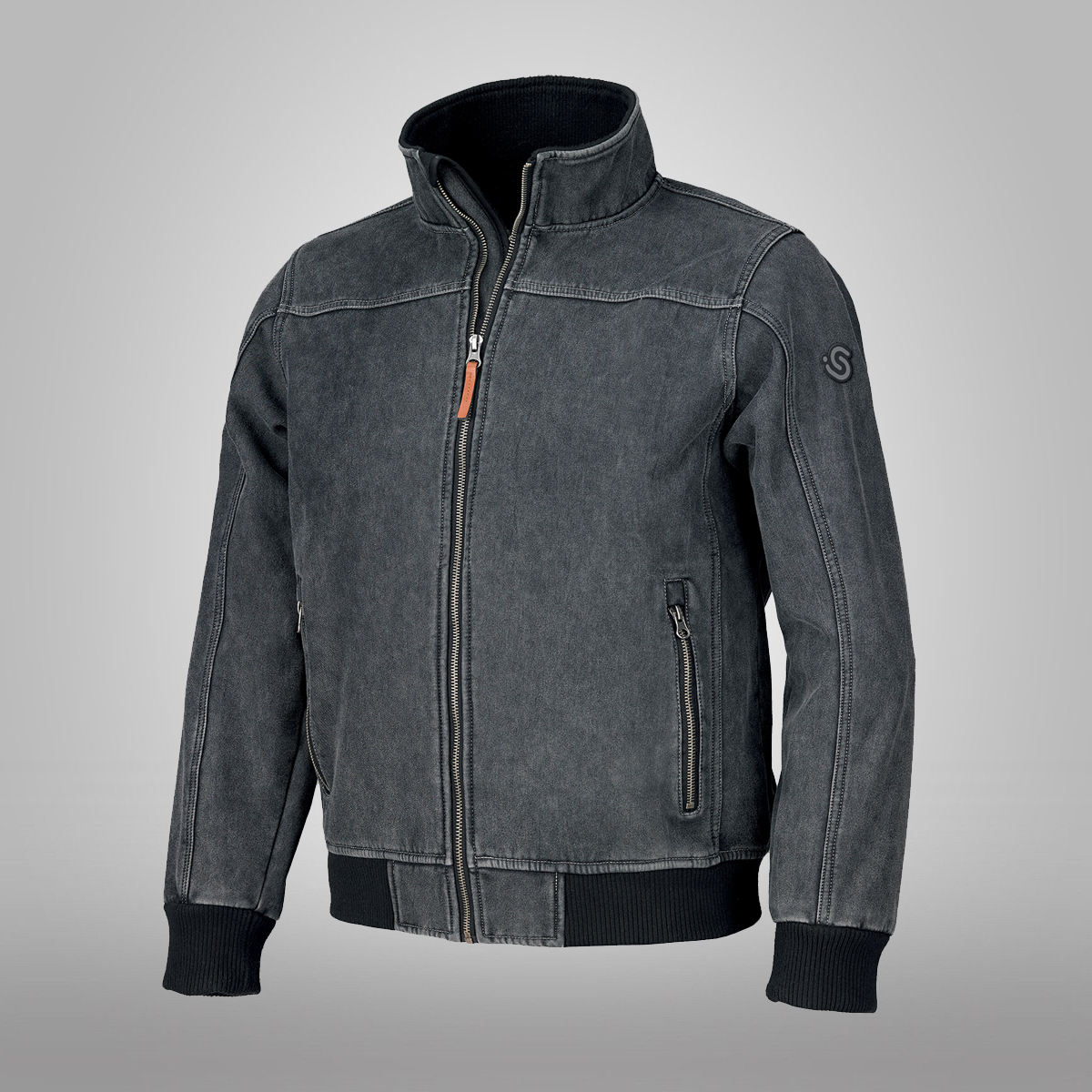 Technická bunda Softshell vypadá jako džínová bunda, dvě přední kapsy a dvě vnitřní, pružný úplet v pase a zápěstí. Vnitřní límec z úpletu. Složení: softshell (membrána w / w 8000 1000 MVP) a 60% bavlna, 40% polyester