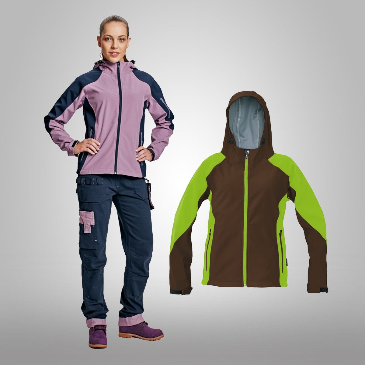 Dámská softshellová bunda s kapucí; voděodolná a prodyšná; 2 boční kapsy na zip; nastavitelná šířka rukávů pomocí suchého zipu; odvod kapuce lze nastavit pomocí stahovací šňůrky.