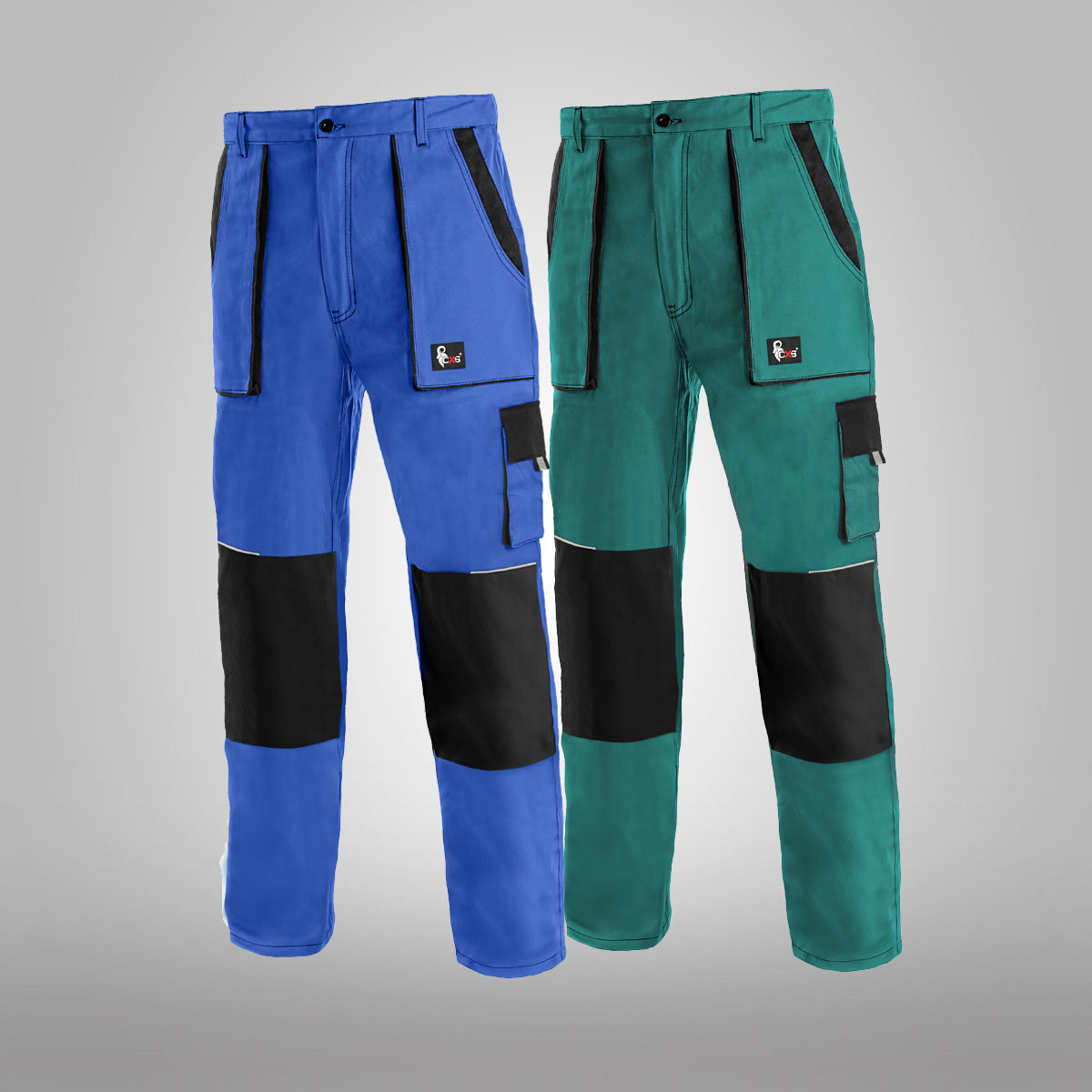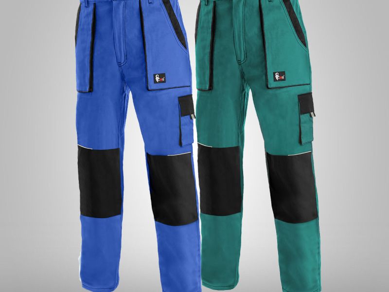Pánské kalhoty do pasu, zdvojená kolena, pevný pas vzadu do gumy s poutky na opasek, přední našité kapsy, boční kapsy na metr a na mobil.
