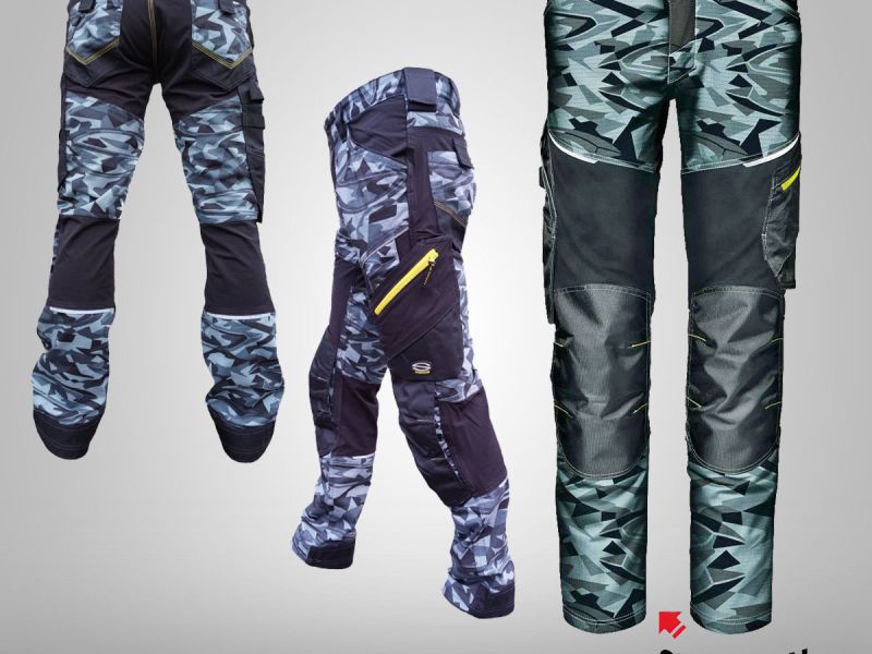 Pracovní kalhoty vyrobené ze strečové tkaniny Canvas. Pevné a pohodlné, oděruodolné, neomezují v pohybu, moderní střih, zapínání na zip a knoflík, kryté klopou, reflexní doplňky, 2 prostorné stehenní kapsy, zadní kapsy, zdvojená kolena, dvojité švy