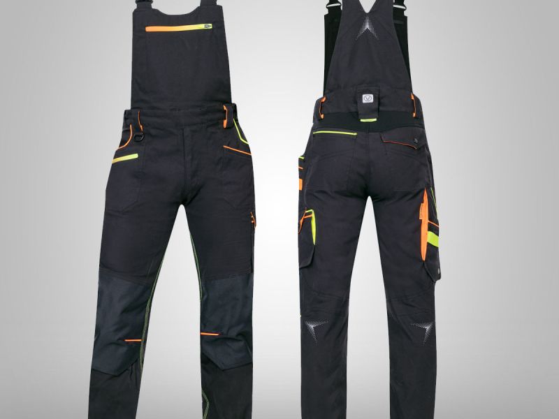 Strečové bavlněné montérkové kalhoty s laclem ze speciálního materiálu Amalytton®, který vyniká zvýšenou pevností a hladkým, jemným povrchem, sníženou gramáž oceníte díky příjemnému pocitu při nošení. Na exponovaných partiích je použitý odolný a čtyřsměrně elastický materiál Tabiflex®. Kalhoty mají vysoce funkční ergonomický 3D střih SLIM FIT, který zvýrazňuje siluetu, oblast kolen je zesílená odolným materiálem Oxford s vodoodpudivou úpravou, kapsa na nákoleníky umožňuje použití výztuhy. Technologie ADN®AdaptBelt zajišťuje plynulé přizpůsobení šířky pasu při každém pohybu bez pocitu omezení. Kalhoty jsou vybaveny vnitřní protiskluzovou páskou, D kroužkem na karabinu, 2 průhmatovými kapsami, 1 přední zipovou kapsou, 1 přední nářaďovou kapsou se širokým poutkem, na pravé nohavici je umístěna multifunkční kapsa na skládací metr, šroubovák a odlamovací nůž se širokými poutky, na levé nohavici je velká dvojitá kapsa krytá patkou na druk. Zadní díl člení sedlo a 2 kapsy, pravá zadní kapsa je krytá patkou na druk, trojité prošití v namáhaných partiích, na laclu je umístěna 1 zipová kapsa, elastické šle umožňují snadné nastavení délky. Spodní lem nohavic je vyztužený materiálem Oxford, který je odolný proti oděru. Zvýšenou viditelnost uživatele zajišťují dynamické reflexní 3D potisky a hi-vis doplňky. Délku nohavic lze snadno prodloužit o 5 cm