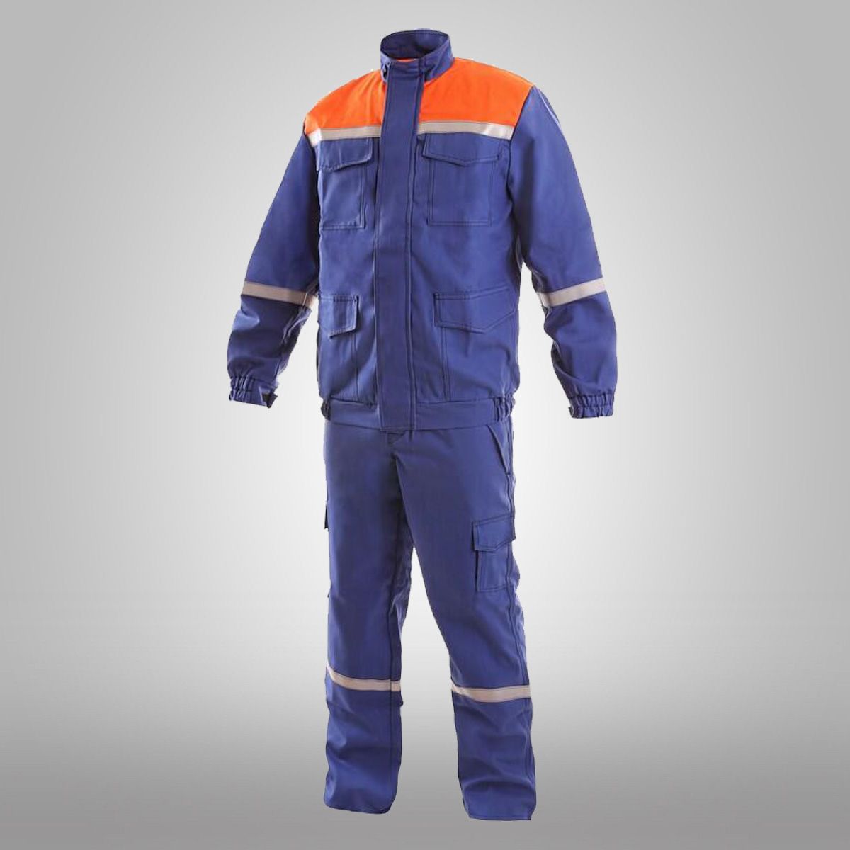 Pánská ochranná souprava, antistatická s trvalou nehořlavou ochranou PROBAN a úpravou odolnou kapalným chemikáliím typu 6 a typu PB [6]. Blůza s krytým zapínáním na zip a suchý zip, rukáv do gumy s nastavitelnou manžetou, 4 přední kapsy na blůze, boky manžety blůzy do gumy, pas kalhot do gumy s poutky na opasek, 4 přední kapsy na suchý zip na kalhotech.