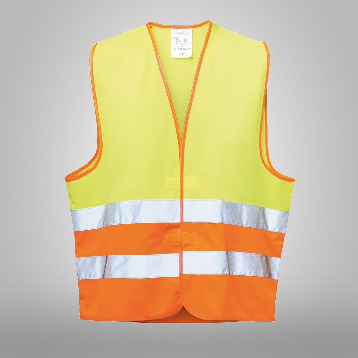 Dvoubarevná reflexní vesta. Splňuje požadavky normy EN ISO 20471 třídy 2.