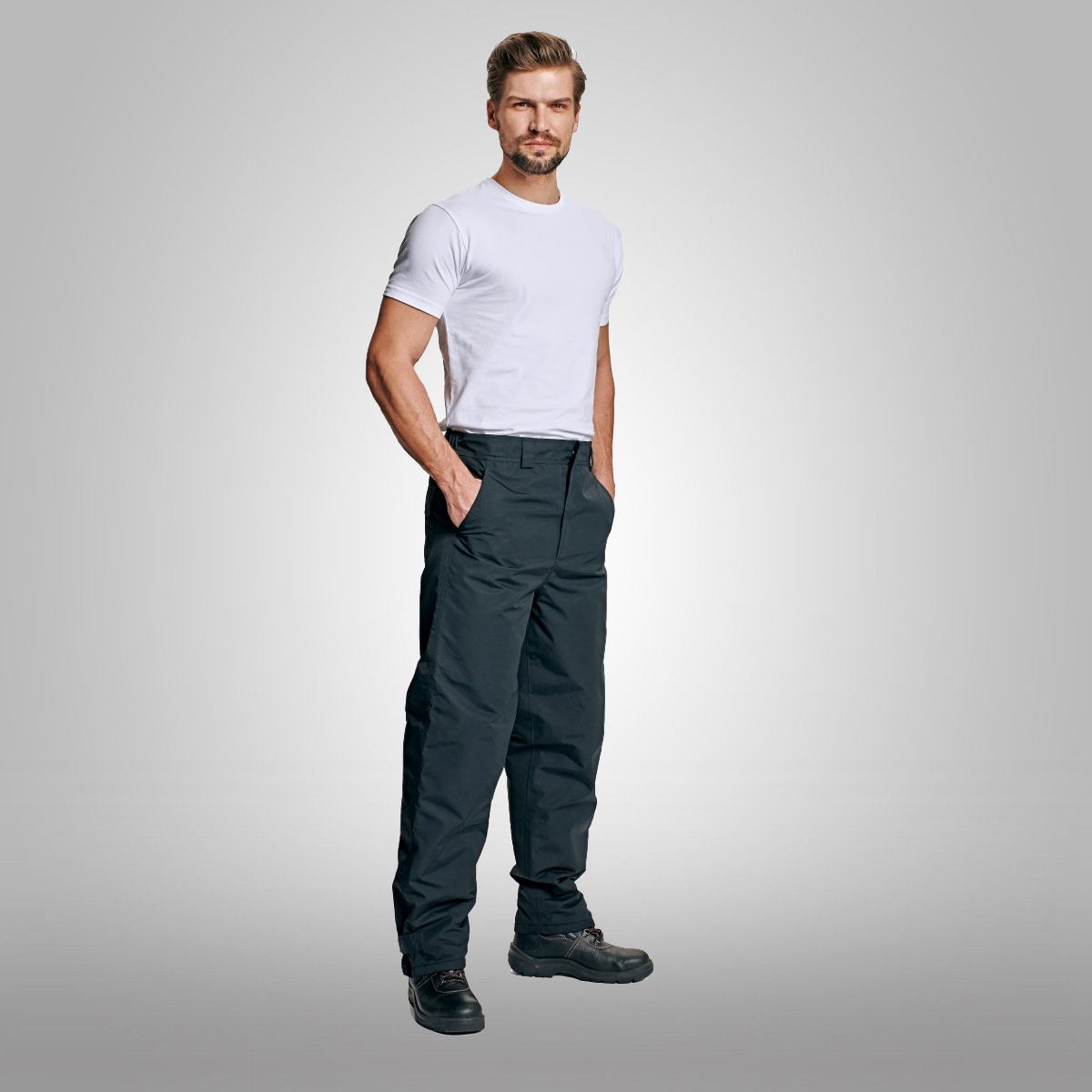 Pánské zateplené zimní nepromokavé kalhoty s paropropustnou membránou; voděodolné a prodyšné; v pase na gumu s poutky na pásek; konce nohavic s nastavitelným rozparkem na suchý zip pro kombinaci s vyšší obuví.