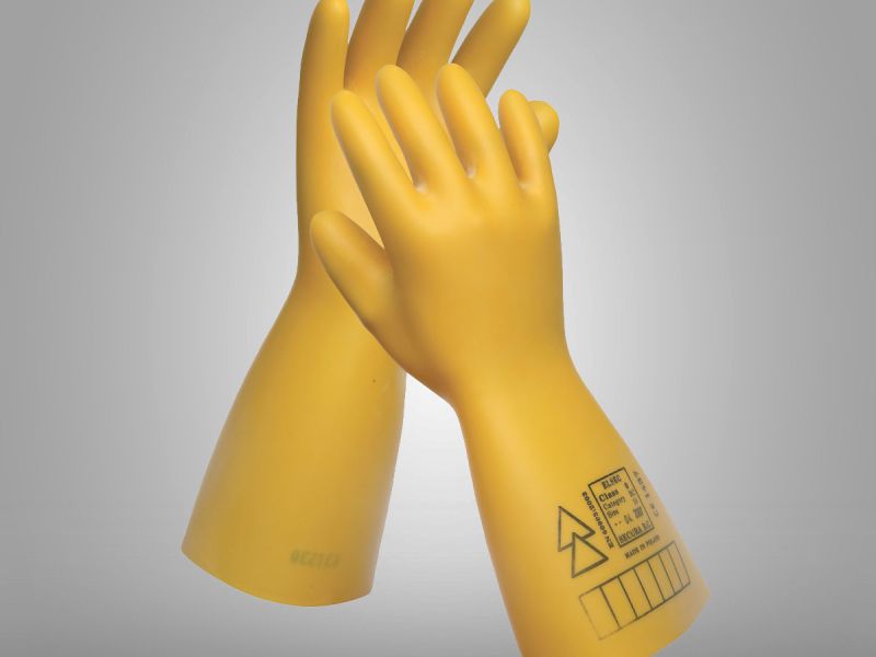 Dielektrické izolační rukavice do 1000V z kvalitního přírodního latexu pro ochranu před nebezpečným napětím. Norma: EN 60903.