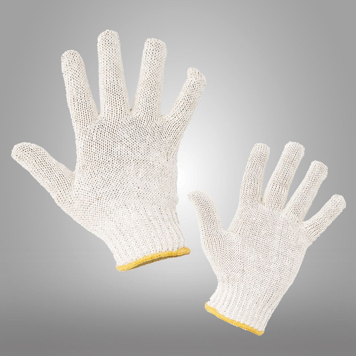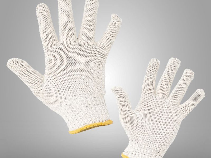 Pletené bezešvé rukavice s pružnou manžetou ze směsi polyester/bavlna.