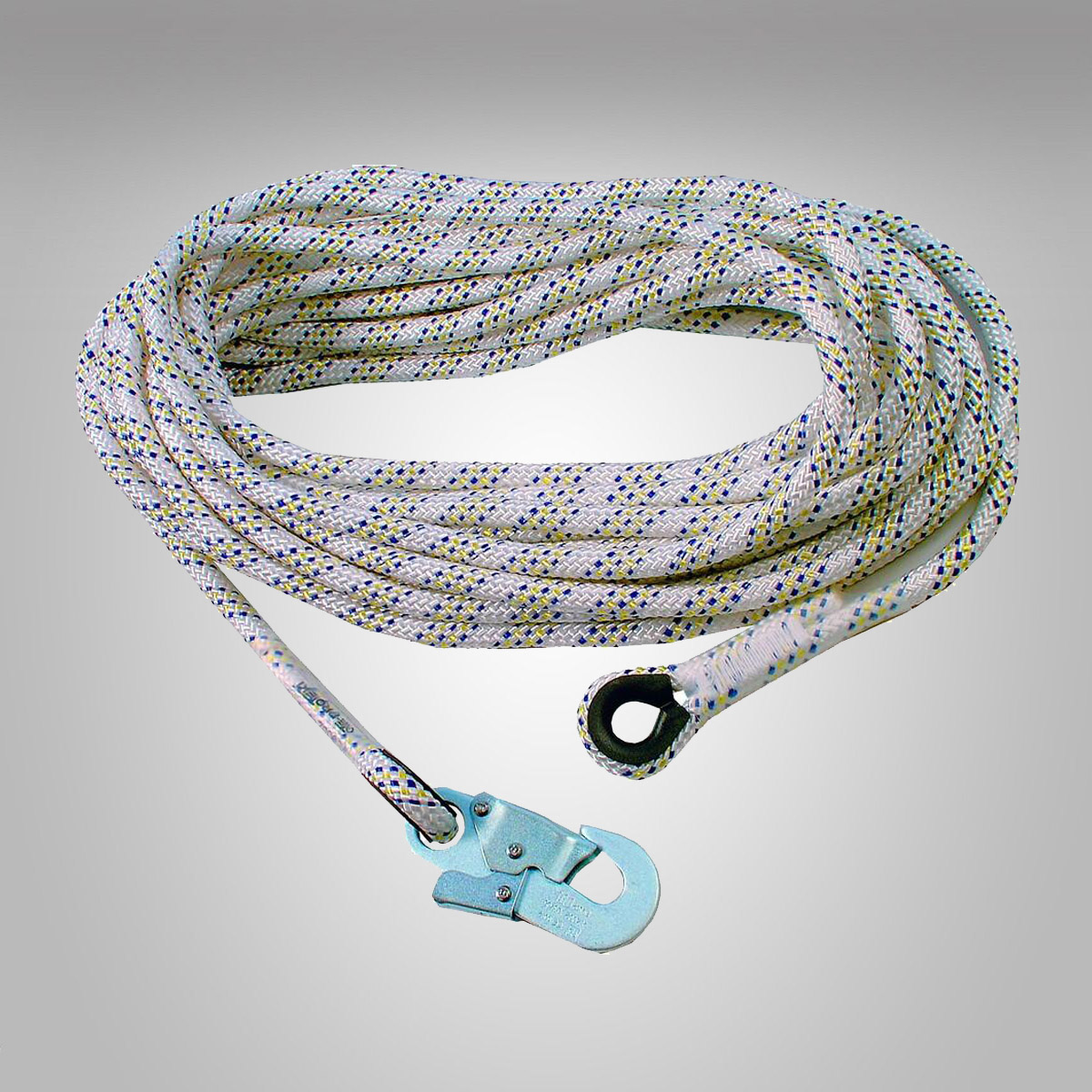 Pracovní lano AC 100 s karabinou. Lano je ukončeno našitými smyčkami opatřenými obrubami. Součástí lana je ocelová karabina AZ 002 s otvorem 18 mm. Lano je určeno pro bezpečnostní brzdu s tlumičem pádu AC 010.