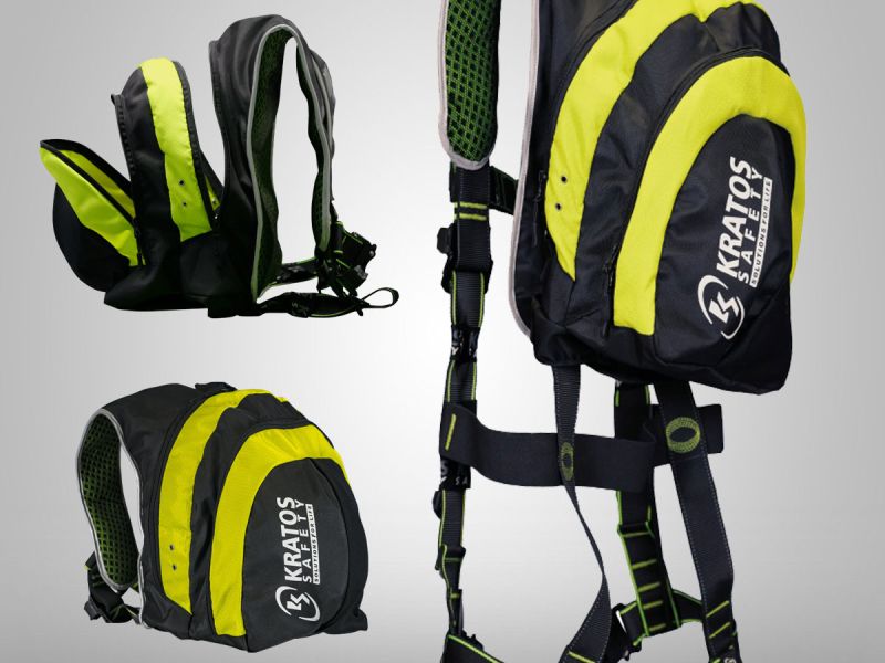 Kratos Adventure – Celotělový postroj a batoh v jednom. Postroj vybaven automatickými přezkami, 1 zádový a 1 hrudní kotvící bod, maximální hmotnost uživatele 140 kg.