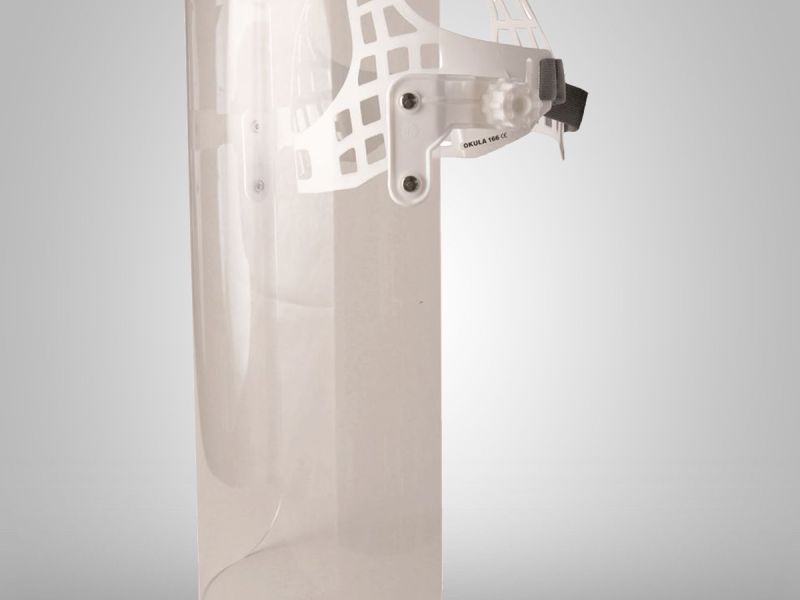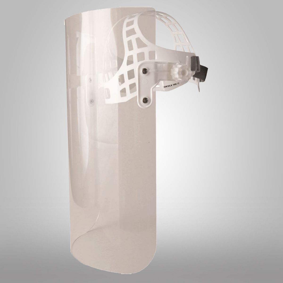 Ochranný štít je tvořen náhlavním nosičem a hledím, hledí z čirého PMMA (plexiskla) tloušťky 2 mm, poskytuje ochranu zraku a obličeje proti poškození nárazem pomalu letících částic, vhodný pro všechny druhy mechanického obrábění, montážní práce nebo pro práci ve zdravotnictví
