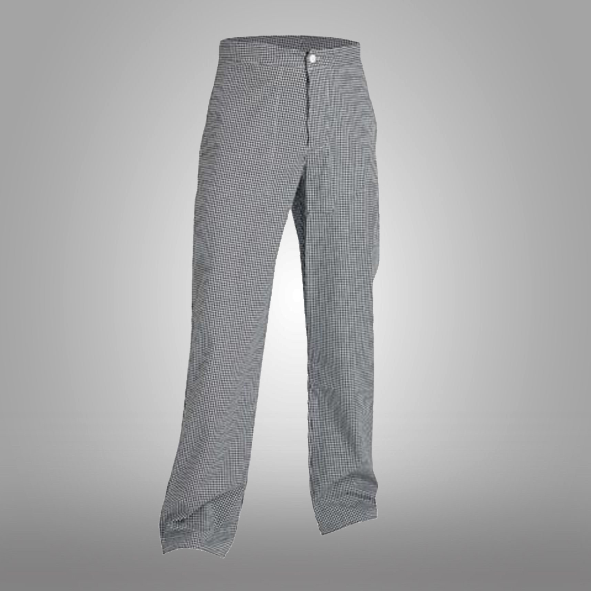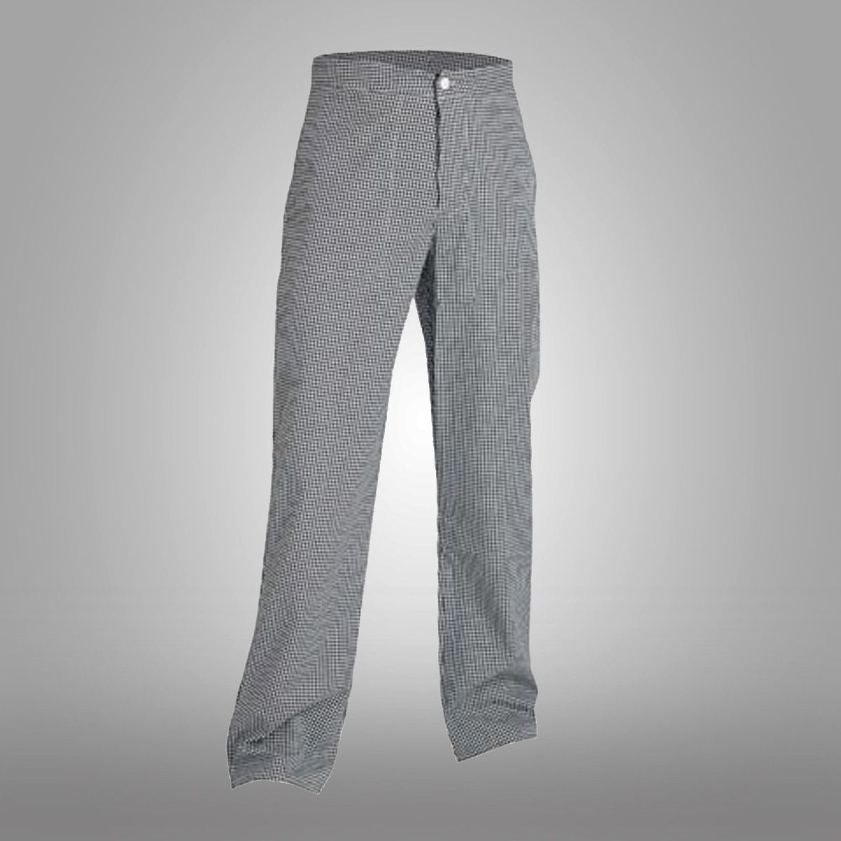 Kalhoty pro řezníky a kuchaře v pase do gumy. Boční kapsy ve švu. Zadní kapsa na knoflík. Klasické řeznické kalhoty. Praktická zadní kapsička na knoflík. Odolný materiál přizpůsoben pro opakované, náročné praní v prádelnách.