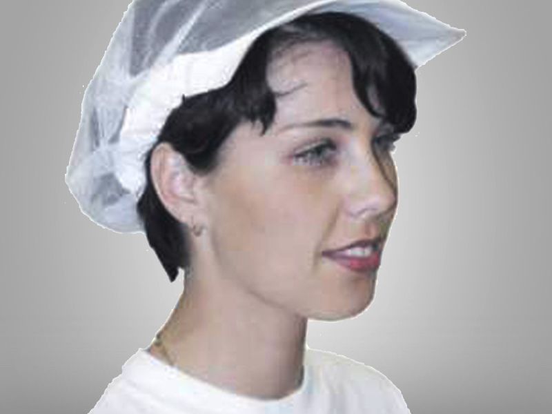 Kuchařská čepice s kšiltem, upevnění na gumu.