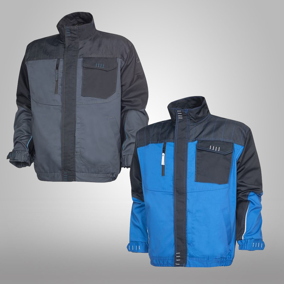 Zajímavě řešená pracovní blůza z kolekce 4TECH v moderním designu modro-černé nebo šedo-černé barvy s decentními doplňky v tyrkysové barvě je vyrobena z pohodlné směsi materiálů polyesteru a bavlny.