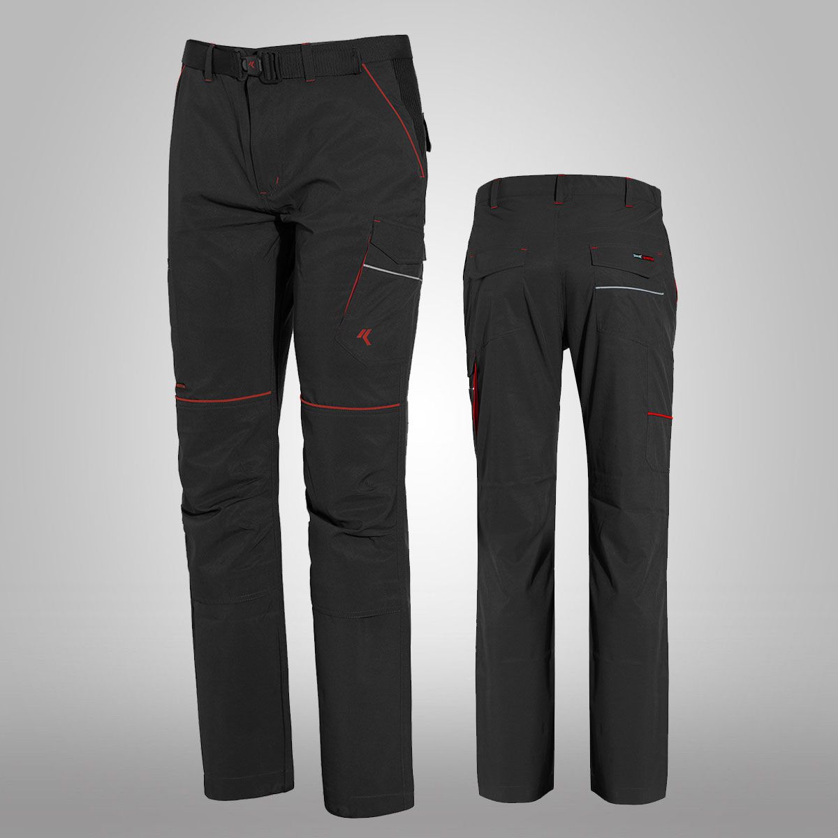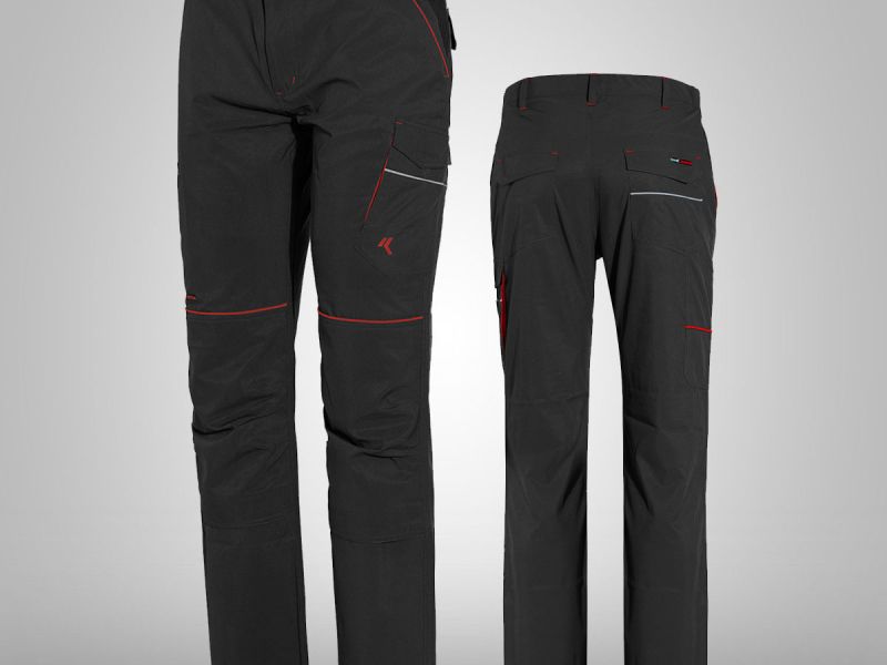 Kalhoty ze 4směrného strečového softshellu, který díky své střední hmotnosti umožňuje celoroční použití. Oděv má otvory na kolenní chrániče, kapsu na pravítko, dvě zadní kapsy a boční kapsu. Dvě boční pasové vsadky ze strečové tkaniny zvyšují pohodlí v pase, zatímco vysoce viditelné vsadky zajišťují minimální viditelnost v noci. Dodává se s opaskem.