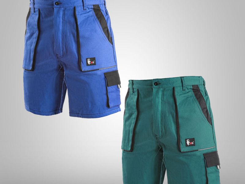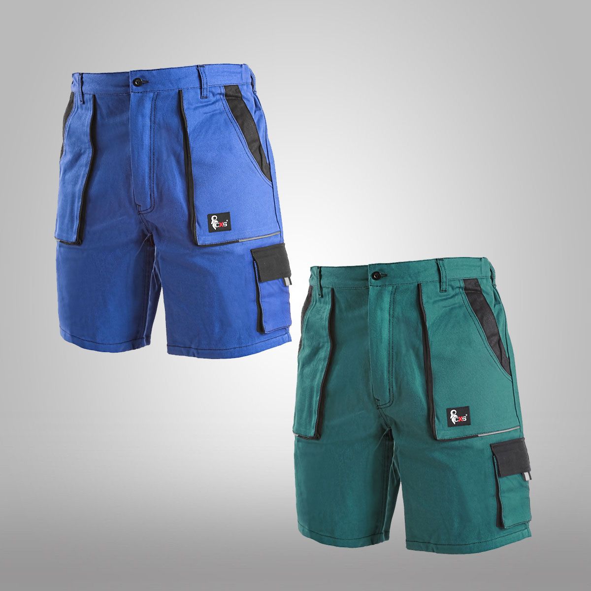 Pánské montérkové kraťasy, pas s poutky na opasek, vzadu do gumy, přední kapsy, boční kapsa na svinovací / skládací metr, boční kapsa na mobil / peněženku, zadní kapsa s klopou, reflexní doplňky.