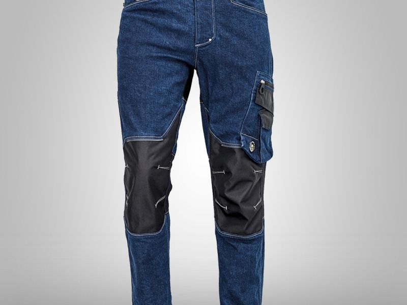 Pánské pracovní kalhoty, elastická předepraná denim látka, slim střih, snížený pružný pas, odolné trojité prošití nohavic a sedu, CORDURA a TRIFIBETEX zesílená oblast kolen, prostorné multifunkční přední kapsy s poutky na nářadí, 2 zadní kapsy, stehenní kapsa na telefon s klopou a zapínáním na suchý zip, kapsa na metr a nůž, poutko na kladivo, "D" kroužek, poutko na nářadí v pase, originální zpracování zapínání kalhot, nastavitelná délka nohavic.