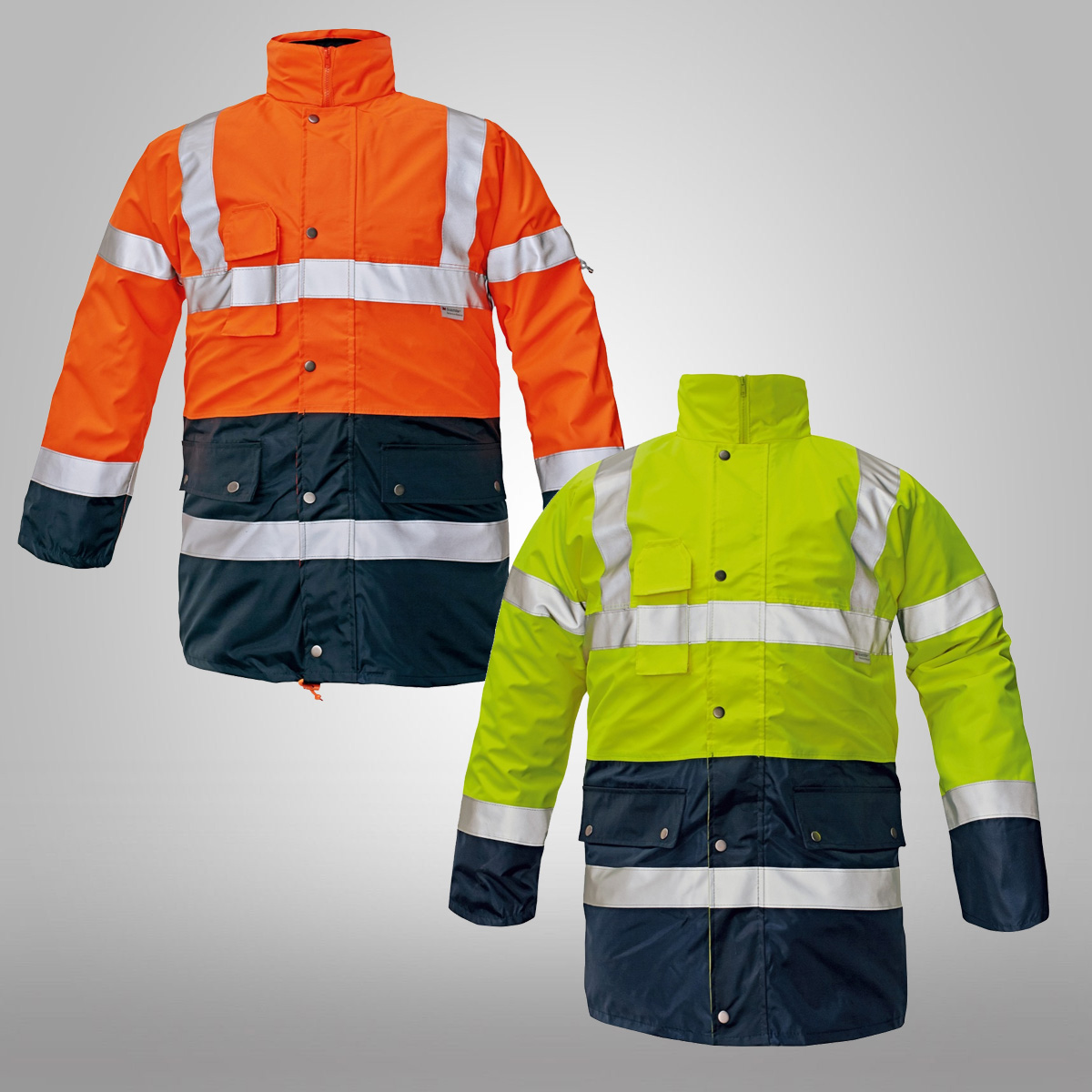 Zateplená “Hi-Vis” bunda 4 v 1 s reflexními pruhy • EN ISO 20471: 2013 • EN 343 3,1 • odepínatelná samostatně nositelná svrchní větrovka, spodní bunda a ves • kapuce integrovaná v límci • švy podlepené • voděodolná • vnitřní pletené manžety • reflexní pásky 3M