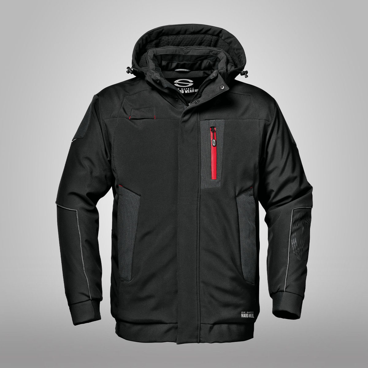Ergofit - střih na rukávech - zajišťuje maximální pohyblivost, zipy v podpaží umožňují odvětrání, oddělitelná podšitá kapuce, oddělitelný držák na ID kartu,