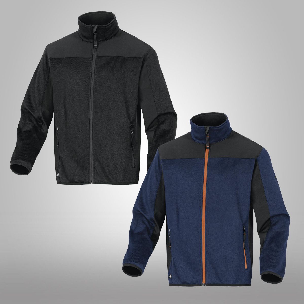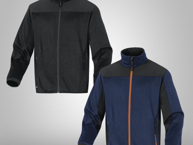 Pletená mikina (řada MACH a PANOSTYLE). Zapínání na zip krytý lištou. Manžety a spodní část oděvu zakončena lemovkou. 4 kapsy.Polyesterové švy 380 g/m². Vsadky: "Softshell" 96% polyester 4% elastan.