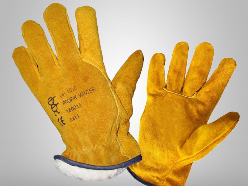 Celokožené rukavice zateplené bonekanovou vložkou, dlaň i hřbet z hovězinové štípené usně, pružinka v zápěstí, velikost: 11, 12 .