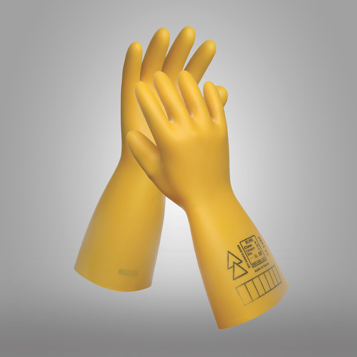 Dielektrické izolační rukavice do 1000V z kvalitního přírodního latexu pro ochranu před nebezpečným napětím. Norma: EN 60903.